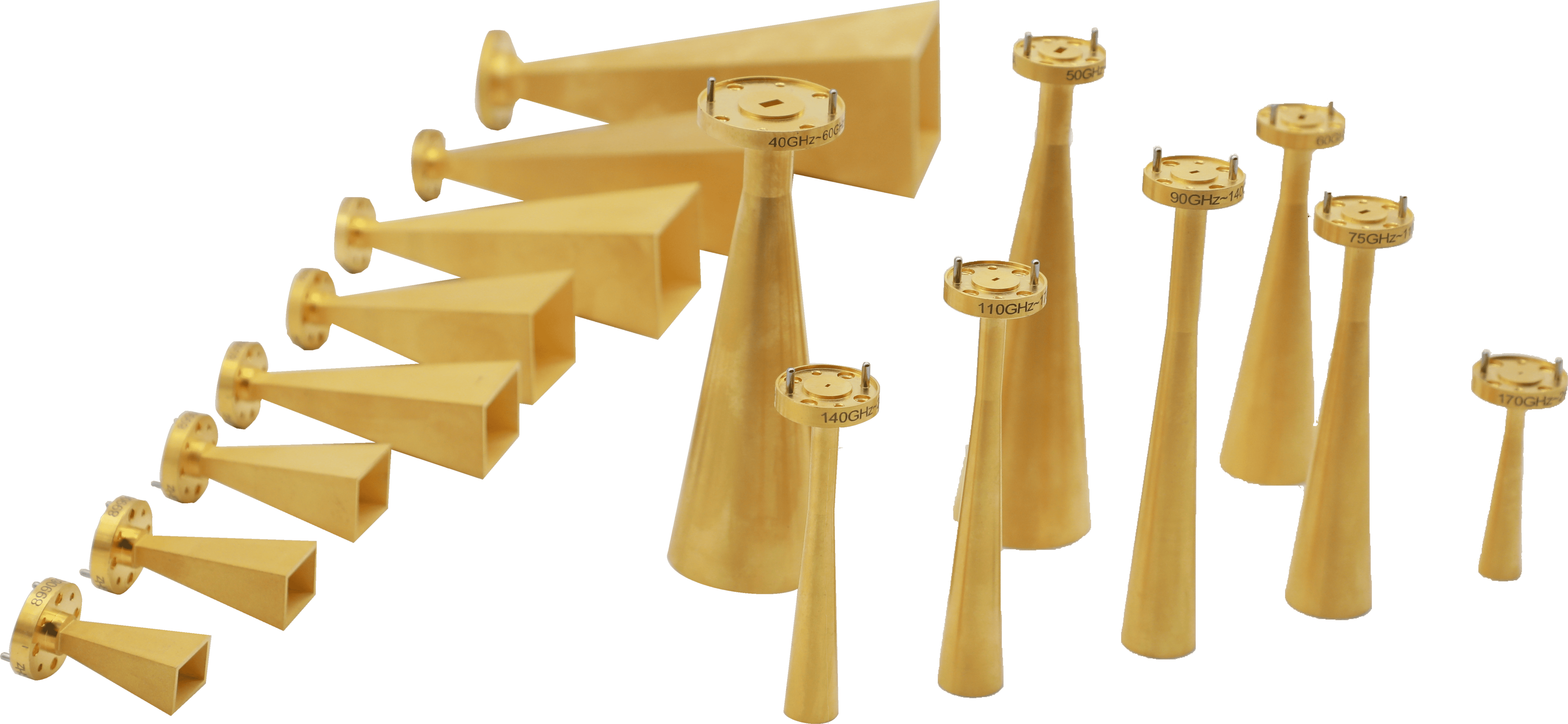 係列化太赫(hè)茲喇叭天線,共有圓錐及角錐兩(liǎng)種類型,頻率範圍覆(fù)蓋33GHz~1100GHz,具有(yǒu)駐波小、增益高等特點。