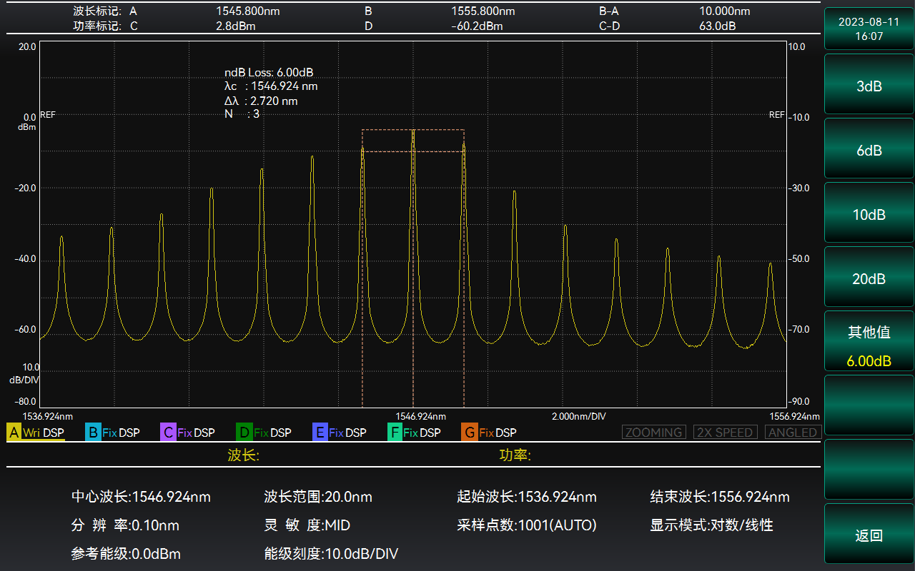 ndB損(sǔn)耗法(fǎ)測試中心(xīn)波長和光譜帶寬