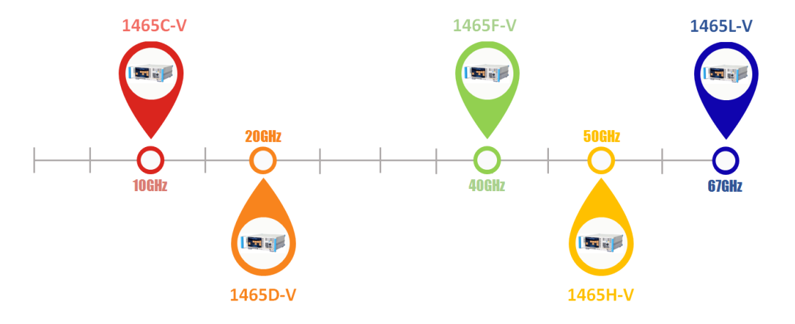 1465-V係列信號發生器能夠根據不同領域用戶的具體需求,提供頻率上限分(fèn)別覆蓋10GHz/20GHz/40GHz/50GHz/67GHz的(de)多種測(cè)試方案。尤其是1465L-V型信號發生器(qì)100kHz~67GHz的寬頻段覆蓋的特性(xìng)可滿足絕大多數用戶的測試需求。