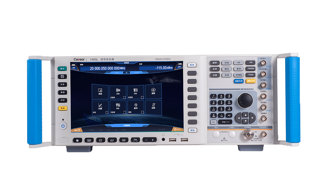 1465係列信號發生器頻率範圍覆蓋100kHz~67GHz,具有卓越的頻譜純度和(hé)輸出功率指(zhǐ)標,單邊帶相位(wèi)噪聲10GHz載波(bō)@10kHz頻偏-126dBc/Hz,最大(dà)輸出功率可達1W@20GHz,輸出功率動態範圍大於150dB,可(kě)滿足對測試信號的高端需求;具有高精度模擬掃描功能、性能(néng)優異的模擬調製和脈衝調製功能,內部調製信號發生器頻率(lǜ)高(gāo)達10MHz,信號波形多樣,脈衝調製最小脈寬20ns並能產生靈活的(de)脈衝串(chuàn),能夠滿足對模擬調製和脈衝調製的各種測試需求;具有10.1吋大顯示屏、1280×800像(xiàng)素(sù)高分辨率,並支持按鍵、鼠標、觸(chù)摸屏等多種操作方式,提升(shēng)操作體驗的(de)同時可以(yǐ)提高(gāo)測(cè)試效率。1465無論是連續波還是調製信(xìn)號,信號質量優異,既是理想的本振源和時鍾源,也是高性能的模擬仿真信號(hào)源,主要用於高性能接收(shōu)機測(cè)試和元器件參數(shù)測試等方(fāng)麵(miàn),適用(yòng)於通信、導航設備等眾多領域。
