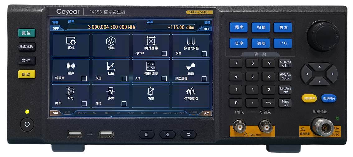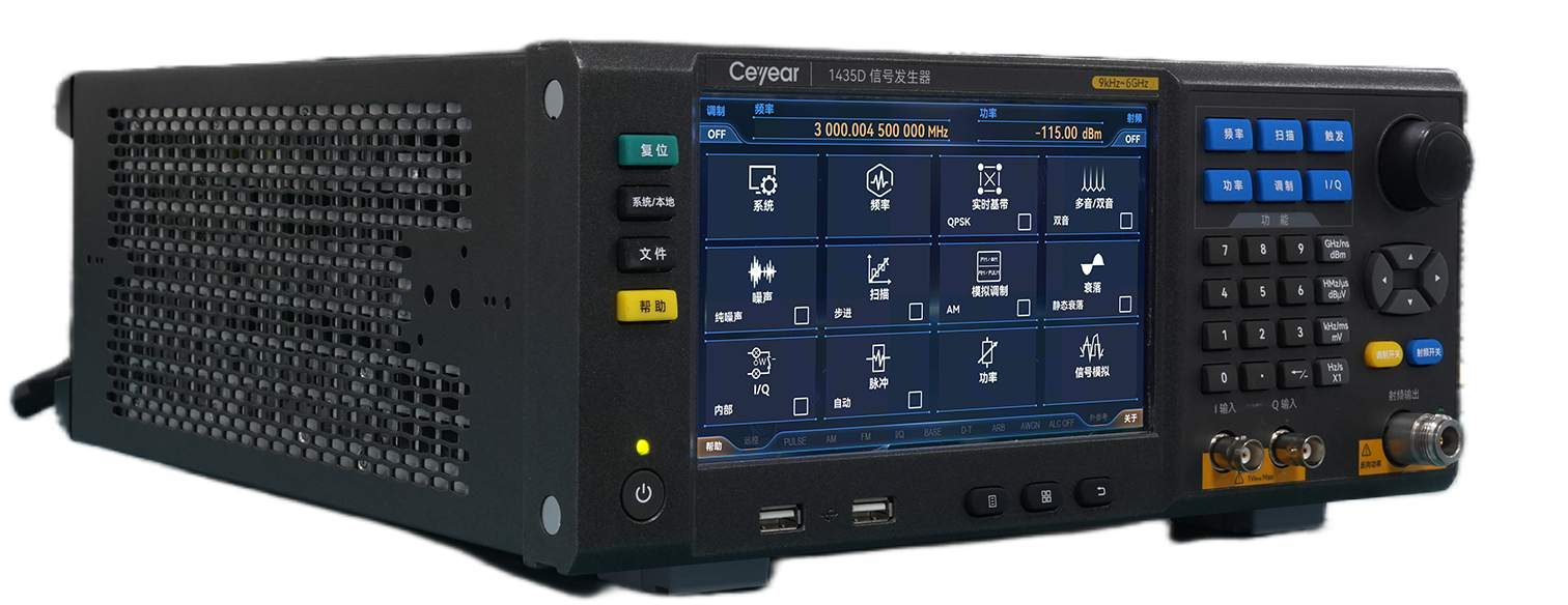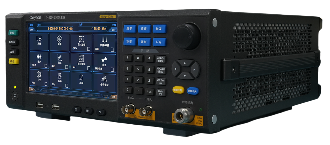 1435-V係列(liè)信號發生器是一款(kuǎn)性能優良(liáng)的(de)矢量信號發生器,頻率範圍覆蓋9kHz~6GHz,200MHz內部調製帶寬和齊全的數字調製樣式,可滿足各(gè)種寬帶數字調製信號的模擬需求。支持5種下載數據格(gé)式的任意波調製,可以根據用戶需(xū)要編輯、下(xià)載配置所需的波(bō)形,完成各種信號模擬,滿足各種(zhǒng)複雜信號的測試需(xū)求;其基帶信號發生器設置簡單、性能優異,支持PSK、QAM、FSK、MSK等超過20種格式的通用(yòng)數字調製信號的實時發生;具有優良的頻譜(pǔ)純度,單邊帶相(xiàng)位噪聲1GHz載波@10kHz頻偏-136dBc/Hz ,6GHz載波@10kHz頻偏-120dBc/Hz;具有高功率輸出和大動態範(fàn)圍,最大輸出功率(lǜ)可達22dBm@3GHz,輸(shū)出功率動態範圍大於(yú)150dB;具(jù)有7寸高靈敏度觸摸LED屏、同時支持觸摸屏、麵板按鍵、旋轉按鈕(niǔ)、外接鼠標(biāo)鍵盤等多種操作方式(shì),操作體驗全麵升級;3U便攜式機箱結(jié)構,體積小重量輕,便於攜帶。1435-V在緊湊的空間內實現優異的性能,既可以滿足設備研發階段對高性能測試需求,也可以滿足生產階段對高(gāo)效率測試需求。