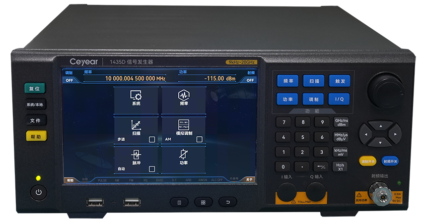 1435係列信號發生器基於創新的技術(shù)實現了性能、經濟性和體積重量的平(píng)衡設計。具(jù)有優良的頻譜純度,單邊帶相位噪聲1GHz載波@10kHz頻偏(piān)達到-136dBc/Hz,10GHz載波@10kHz頻偏達(dá)到-116dBc/Hz;具有高功率輸出和大動態範圍,最大輸出功率可達(dá)20dBm@20GHz,動態範圍大於(yú)150dB;可實現快速頻(pín)率切換,頻率切換時間1ms,縮短測試(shì)時間提高測試效率,滿足海(hǎi)量數據測試需求;具有性能優異的模擬調(diào)製、脈衝(chōng)調製功能(néng)。采用先進的頻率合成和射頻通道(dào)信號處理技(jì)術,獲得高性能的同時降低了成(chéng)本。具有7寸高靈(líng)敏度觸(chù)摸LED屏,同時支持觸摸屏、麵板按鍵、旋轉按鈕、外接鼠標鍵盤等多種操作方(fāng)式,操作體驗全麵升級。3U便攜式機箱結構,體積小重量輕,便(biàn)於攜帶。1435係列信號發生器既可以滿足研發階段對性能(néng)測試(shì)的需求,也可以滿足生產階段對高(gāo)效率測試的需求(qiú)。