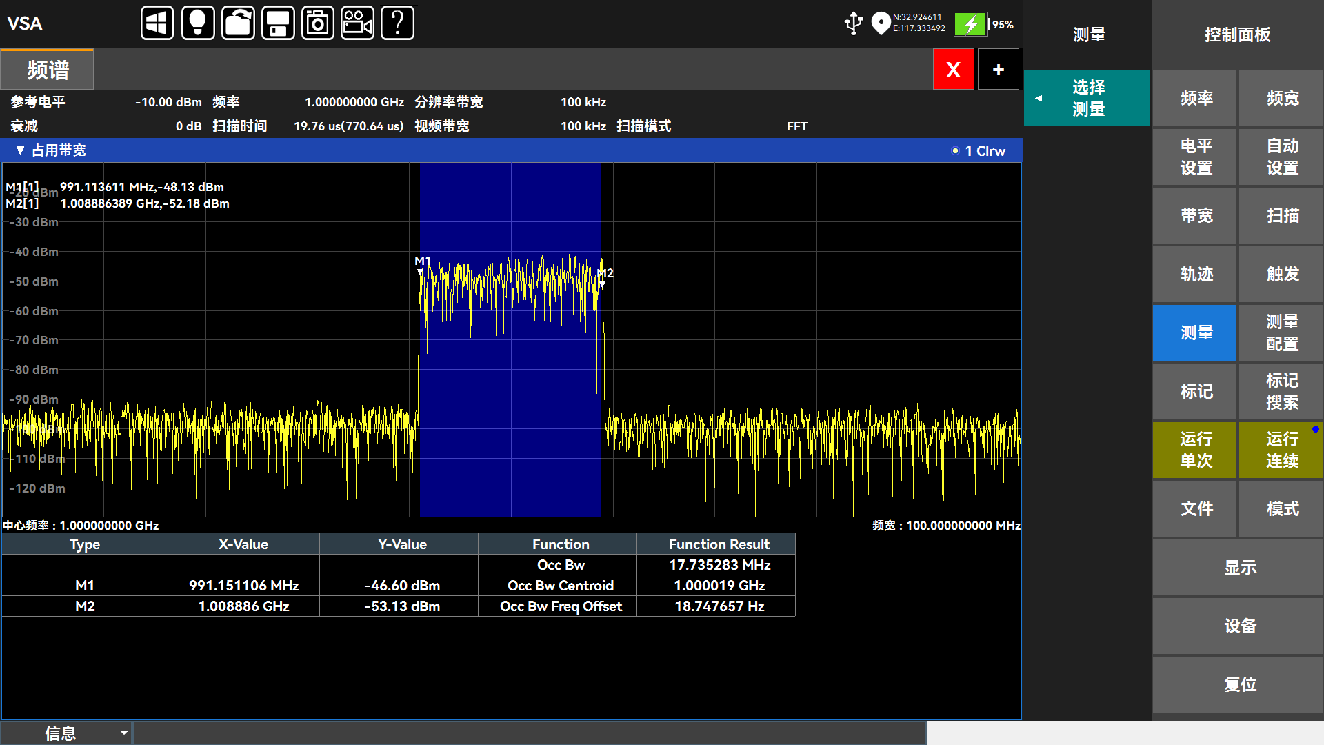測(cè)試分析:頻譜掃描、場強測量、通道功率、占(zhàn)用帶寬、鄰道功率、100MHz實時頻譜、場強測量、頻譜發(fā)射模板、載噪比、諧波(bō)失真、相位噪聲、音頻解調、矢量分析等。