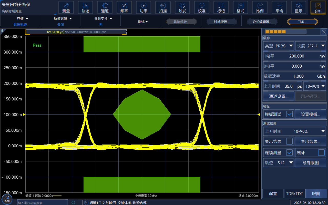 具備基於網絡(luò)參數的虛擬眼圖生成及分析功能。根據不同的高速(sù)數字通(tōng)信標準,可以使用預先定義好的眼圖(tú)模(mó)板進行高效Pass/Fail測試。可以在仿真眼圖施加(jiā)抖動、噪聲等幹擾,通過預加重和均衡等校正算法的加入。模擬(nǐ)真實環境下高速鏈路(lù)不同位置的仿真眼圖。
