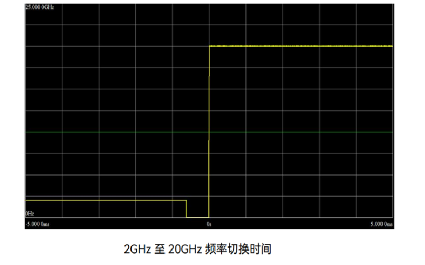 1436可在全頻段內實現快速頻率切換(huàn),實測頻(pín)率切換時間0.67ms,可滿足高(gāo)速測試需求。