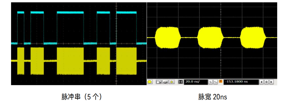脈衝開關比大於80dB,上升下降時間小於10ns,選(xuǎn)用窄脈衝選件H04,最小脈(mò)寬20ns,脈寬範圍20ns~42s-10ns,步進10ns,支持(chí)門控、外部等多種觸發方式。